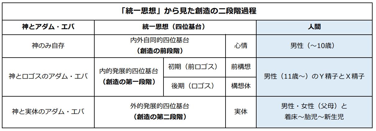 以上のように、「神による創造の二段階過程」と人間の生命誕生は同じ過程を経ていることが分かります。