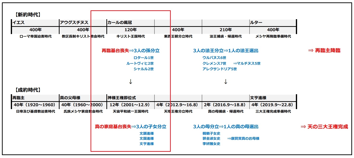 メシヤ再降臨準備時代400年 ⇒ 三大王権完成準備時代4年(2018年9月~22年8月)